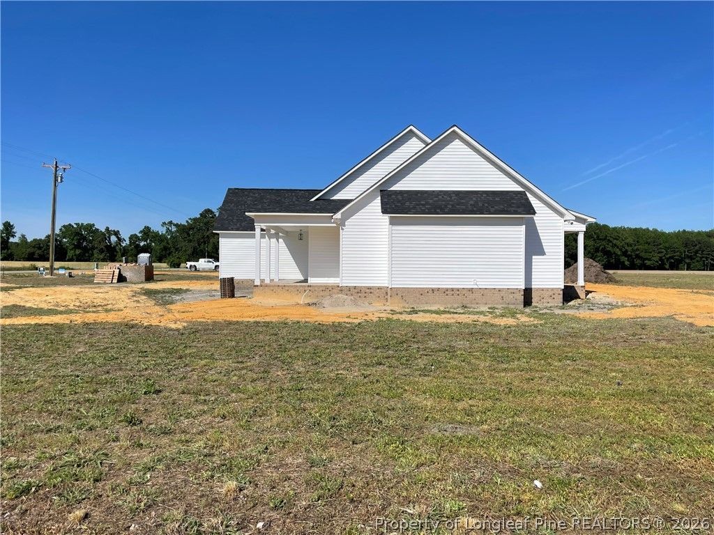 Discover this beautifully crafted new construction home situated on a generous 0.87-acre lot, offering both space and style in a peaceful country setting. This 3-bedroom, 2-bath home welcomes you with an impressive 8-foot front door and a thoughtfully designed layout. Enter through the garage into a convenient hallway that seamlessly connects the laundry room, master closet, and master bath???creating a functional and private owner???s suite flow. Upon entering you will also find a nice drop zone perfect for shoes and clothing. The open-concept living and kitchen area is perfect for gathering and entertaining, featuring granite countertops throughout, a large walk-in pantry, and a stylish tile backsplash. Bathrooms include tile surrounds, with the primary suite offering a walk-in shower, dual vanities, and an elegant drop-down tray ceiling. The secondary bathroom includes a tub/shower combo, and all spare bedrooms feature spacious closets. The living room stands out with a coffered ceiling built into the trusses and enhanced with craftsman-style trim, giving the space an expansive and upscale feel. Craftsman trim details carry throughout the home, adding warmth and character. Enjoy outdoor living with a large wraparound front porch and an additional covered rear porch, both accented by beautiful craftsman-style columns???perfect for relaxing or entertaining. Conveniently located less than a mile off Highway 87, this home offers easy access while maintaining a quiet, rural atmosphere. You???re approximately 32 miles to the All American gate, 24 miles to downtown Fayetteville, 14 miles to Lumberton, and 22 miles to Elizabethtown. A perfect blend of craftsmanship, comfort, and convenience???ready to welcome you home.