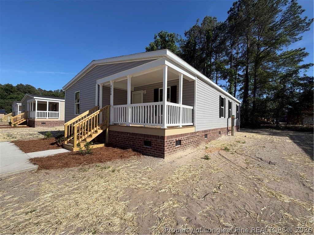 Brand-new manufactured home on a permanent brick foundation. This is not a typical manufactured home and features a large front porch. The interior offers vinyl flooring throughout, three bedrooms, and two full bathrooms. The kitchen is open to the living area and provides ample cabinet storage along with a large walk-in pantry.