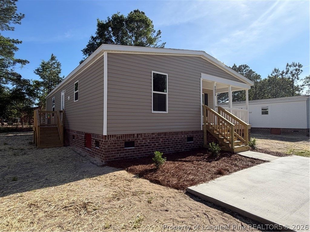 Brand-new manufactured home on a permanent brick foundation. This is not a typical manufactured home and features a large front porch. The interior offers vinyl flooring throughout, three bedrooms, and two full bathrooms. The kitchen is open to the living area and provides ample cabinet storage along with a large walk-in pantry.